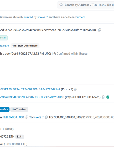 Paxos mint 300 Trillion PYUSD and then they burned it.